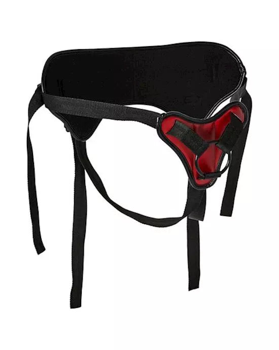 Slide into something powerful with the Sportsheets Saffron Monte Strap On Harness, designed to fit your body comfortably. Bright scarlet faux leather with polished black buckles makes this a statement piece just waiting for your favorite toy. Add a solid or hollow dildo and start your next scene.