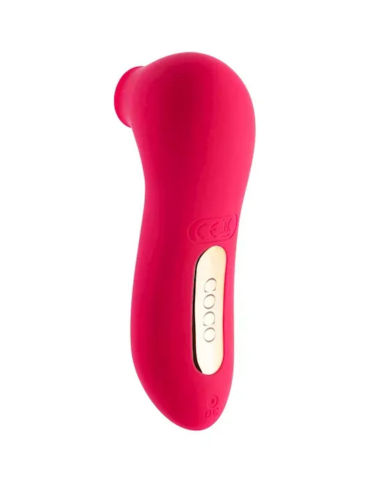 Share Satisfaction is simply buzzing with excitement to introduce you to the newest member of their family ' Coco! A gorgeous little toy perfect for anyone wanting to ease their way into the world of suction vibrators, Coco will be your new best thing! Not ready to invest in a big, intimidating suction vibe? No problem, Coco is here to help you explore your pleasure and get comfy with your body in a discreet, playful way. Sitting happily in the category of smaller toys, Coco is the perfect little friend to bring along on that last minute vacation or risque night away from home ' simply pop Coco into the cute little Share Satisfaction storage bag included and you're good to go! With whisper-quiet vibrations, you're free to experience satisfaction with the knowledge that nobody else needs to know unless they're invited to share. Coco has 10 modes of suction ranging from a light flutter to a strong, quick experience. Ideal for those who are more sensitive or struggle with over-stimulation, Coco's suction-based vibrations are softer than some larger toys and help to ease you into a body-melting orgasm. Coco truly is the perfect starting point for anyone curious about suction toys or needing something a bit gentler than a bulky, high-powered vibe. The silky-smooth, totally body-safe silicone of this toy makes it an absolute joy to hold, while the slight curve to the handle aids in maneuvering this toy to the best position possible. The suction tip is a perfect circle, allowing for pinpoint stimulation but versatile enough to be used anywhere on the body - try out some nipple play, or use Coco on the head of the penis! Coco's slightly raised buttons bordered by glittering gold make it a breeze to change settings in the heat of the moment, as well. No need to be overwhelmed with settings and functions, Coco has only what you need! The 3 smart control buttons let you turn the toy on or off, increase, or decrease the power with a tactile click - without needing to cycle back through endless functions. Available in a variety of bright, playful colours, this cutie will bring levity and light to any bedroom. Are you more of a funky orange, or a bold fuchsia? Take your pick and play with Coco!